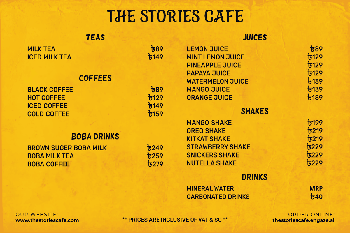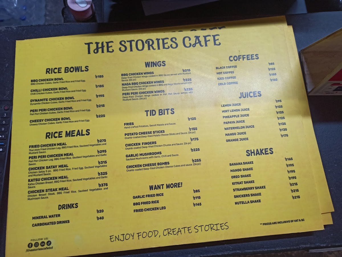 Introducing The Stories Cafe, a charming culinary haven nestled in Dhaka's vibrant Mirpur 02. This cozy cafe is not just a place to eat, but a sanctuary for food lovers seeking delightful flavors and a warm ambiance. The menu offers a delectable range of offerings tailored for every palate.